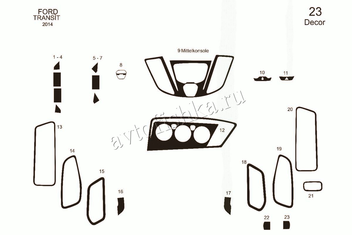 Декоративные накладки на панель приборов | Тюнинг салона для Ford Transit 2014 – н.в. полный набор накладок в салон