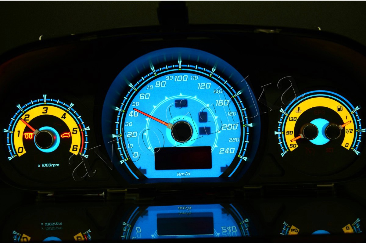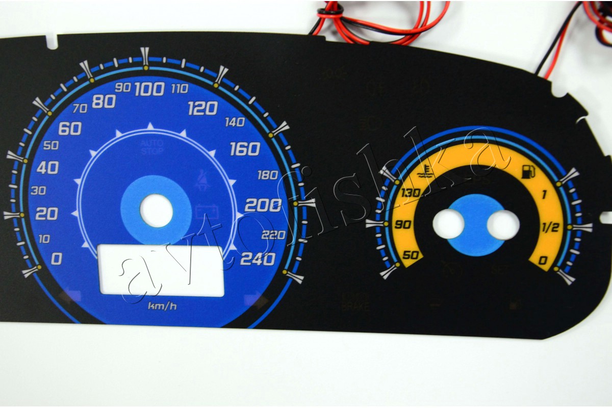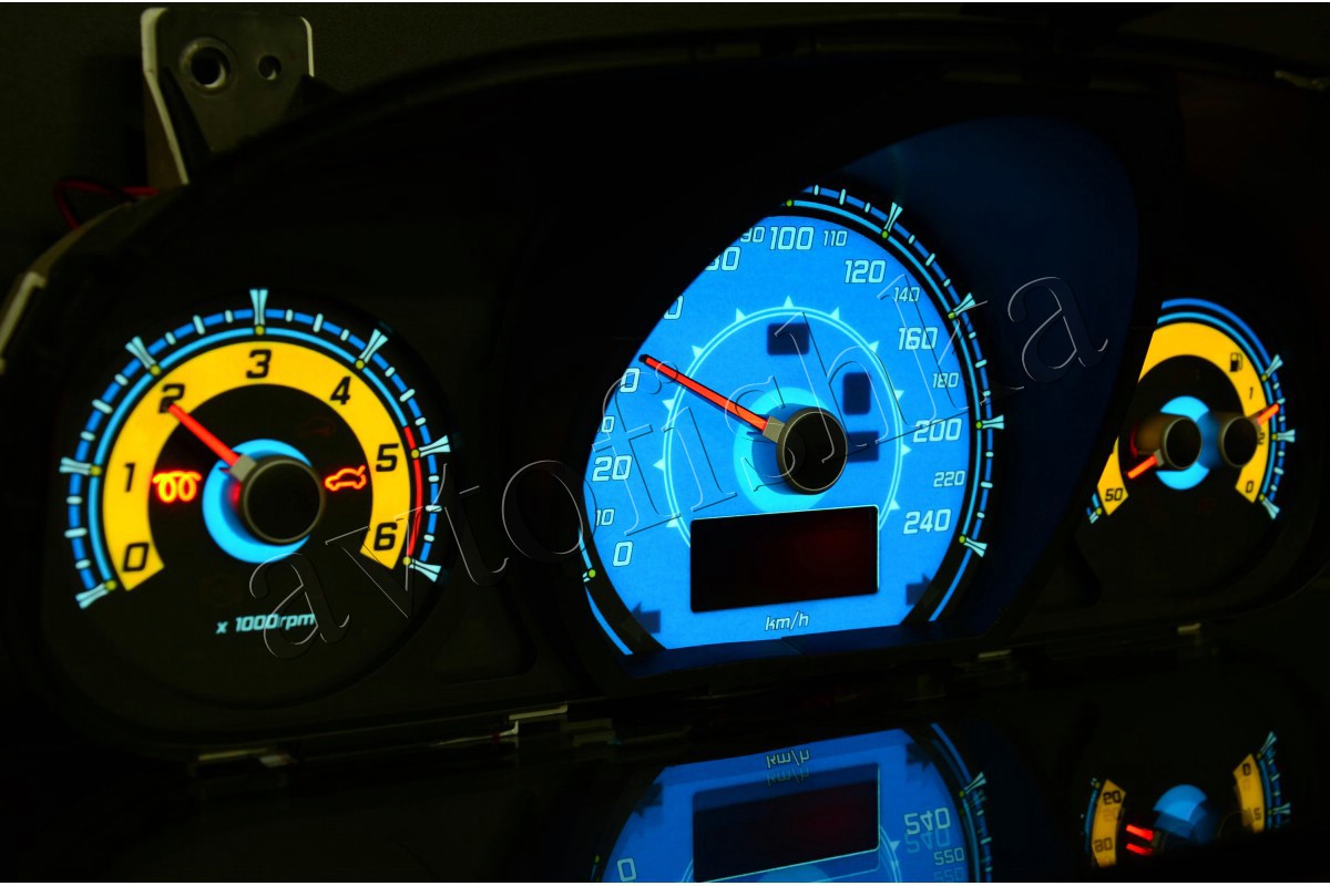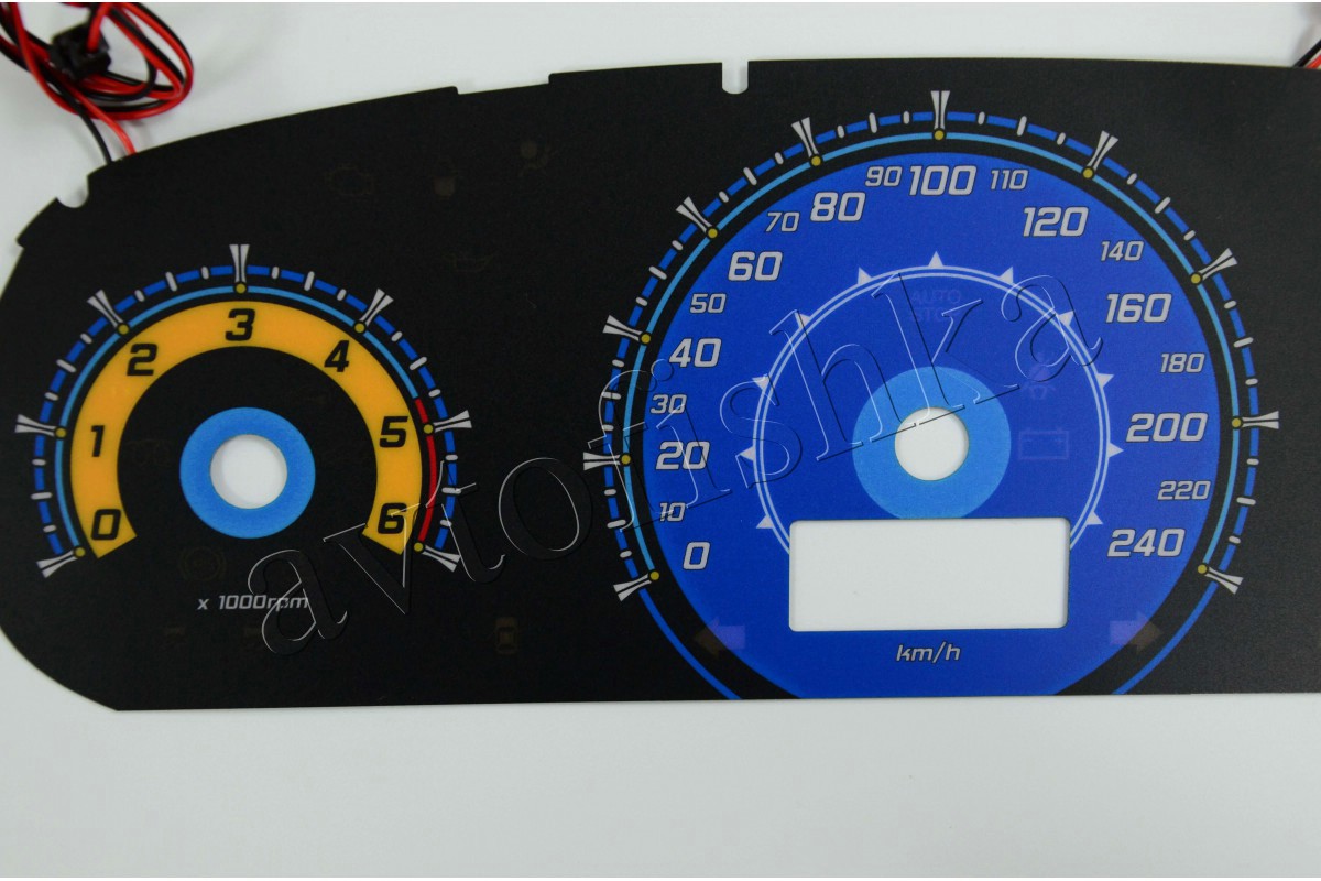 В продаже доступны следующие типы шкал приборов:240км/час, 140м/час, 6000об/мин, 8000об/мин. Если на сайте циферблатов нет, для вашего автомобиля или дизайна, которые вы ищете, свяжитесь с нами. Выбор цвета освещения шкал при боров: