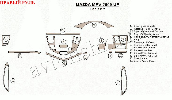 Декоративные накладки на панель приборов | Тюнинг салона для mazda mPV 2000 – н.в. базовый набор, правый руль