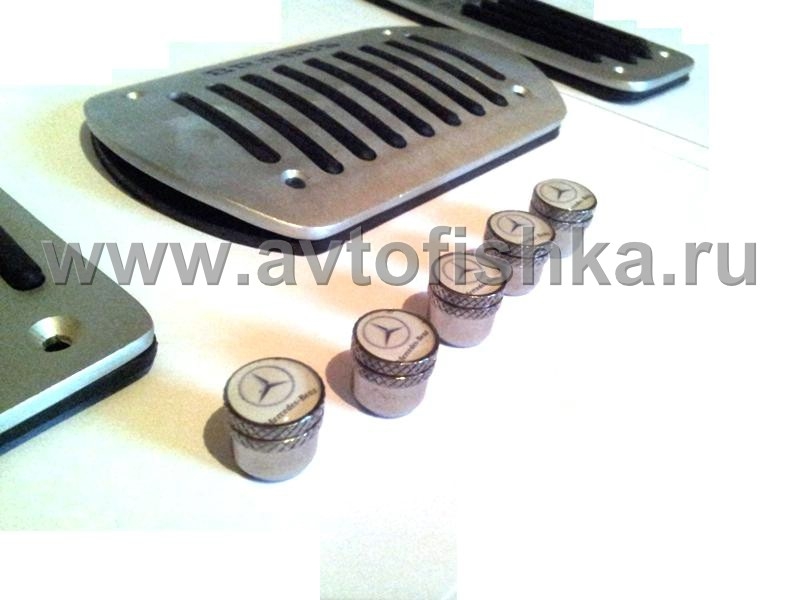 —Mercedes, накладки на педали, подставку под ногу, алюминиевые, с логотипом BRABUS + колпачки на ниппели, с логотипом Mercedes-Benz, комплект 9 предметов