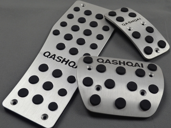 Nissan Qashqai (06-), +2 (08-) алюминиевые накладки на педали с надписью "Qashqai" для АКПП, комплект 3 шт.