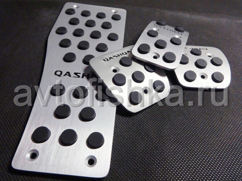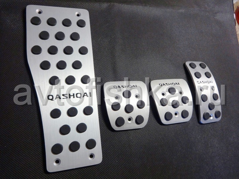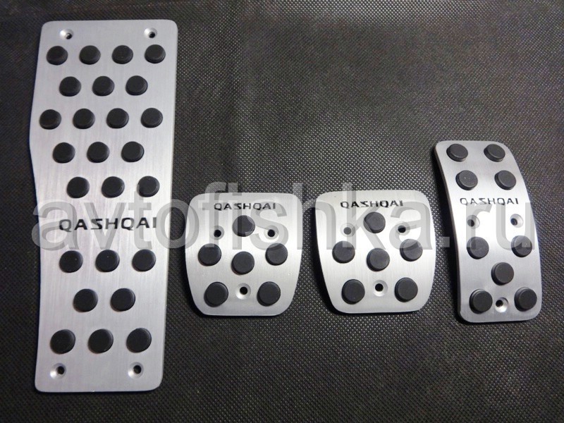 —Nissan Qashqai (06-), +2 (08-) алюминиевые накладки на педали с надписью "Qashqai" для МКПП, комплект 4 шт.