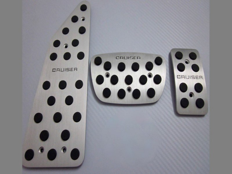 —Toyota Land Cruiser 200 (2008-) алюминиевые накладки на педали с логотипом "Cruiser", комплект 3 предмета
