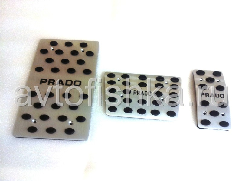 Toyota Land Cruiser Prado 150 (2010-) накладки на педали, подставку под ногу, алюминиевые, с логотипом PRADO, комплект 3 шт.