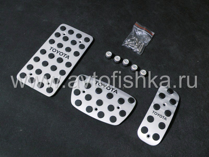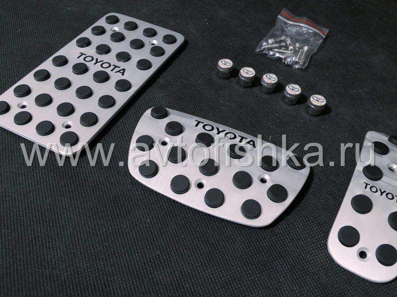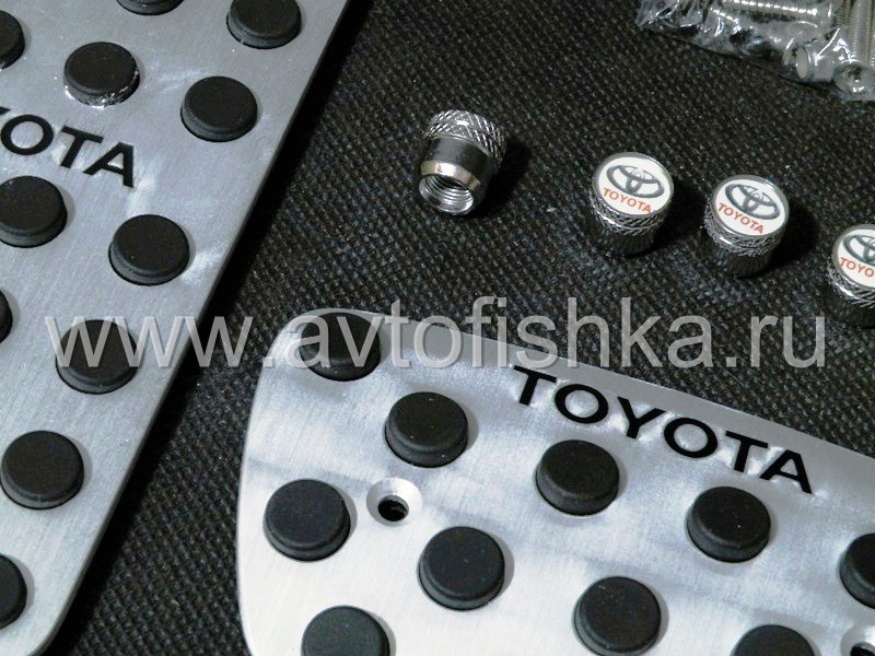 —Toyota накладки на педали, подставку под ногу, алюминиевые + колпачки на нипели, с логотипом TOYOTA, комплект 8 шт.