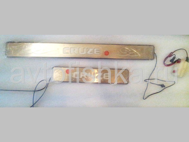 Chevrolet Cruze (08-) накладки на дверные порожки из нержавеющей стали с автономной подсветкой "Cruze", комплект 4 шт.