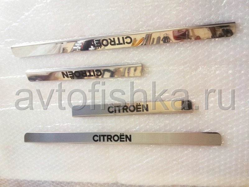 —Citroen C3, Picasso накладки на пороги дверных проемов, из нержавеющей стали с надписью Citroen, комплект 4 шт.