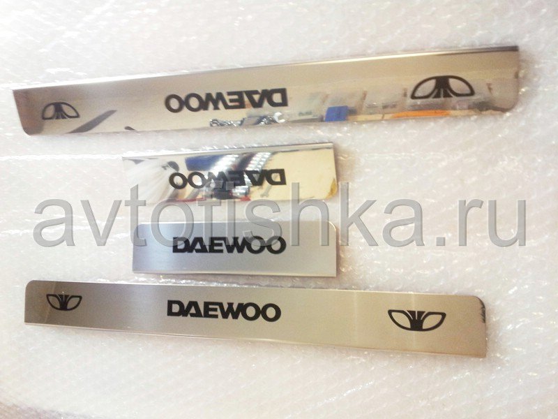 —Daewoo Matiz накладки на пороги дверных проемов, из нержавеющей стали с надписью Daewoo, комплект 4 шт.