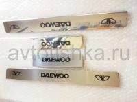 Daewoo Matiz накладки на пороги дверных проемов, из нержавеющей стали с надписью Daewoo, комплект 4 шт.
