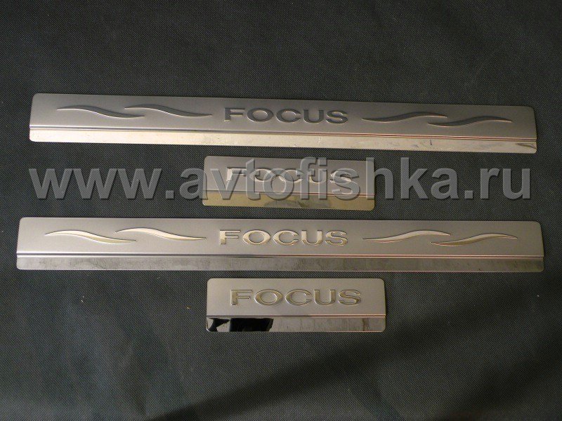 Ford Focus (05-08, 09-) седан, хэтчбек накладки порогов дверных проемов из нержавеющей стали, комплект 4 шт.
