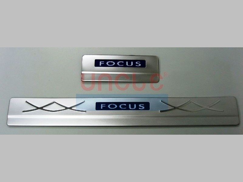 —Ford Focus (05-08, 09-) седан, хэтчбек накладки порогов дверных проемов из нержавеющей стали с подсветкой, комплект 4 шт.