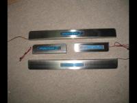 Mazda 2 (08-) накладки порогов дверных проемов из нержавеющей стали с подсветкой, комплект 4 шт.