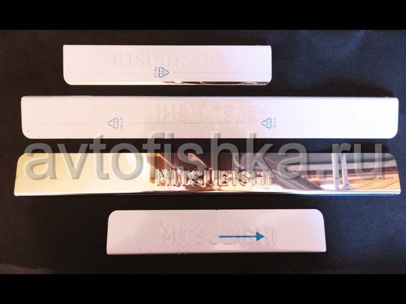 —Mitsubishi ASX, Outlander XL, Lancer 10 накладки на пороги дверных проемов, из нержавеющей стали с надписью Mitsubishi, комплект 4 шт.