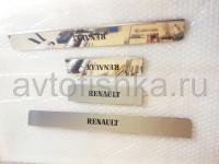 Renault Fluence накладки на пороги дверных проемов, из нержавеющей стали с надписью Renault, комплект 4 шт.
