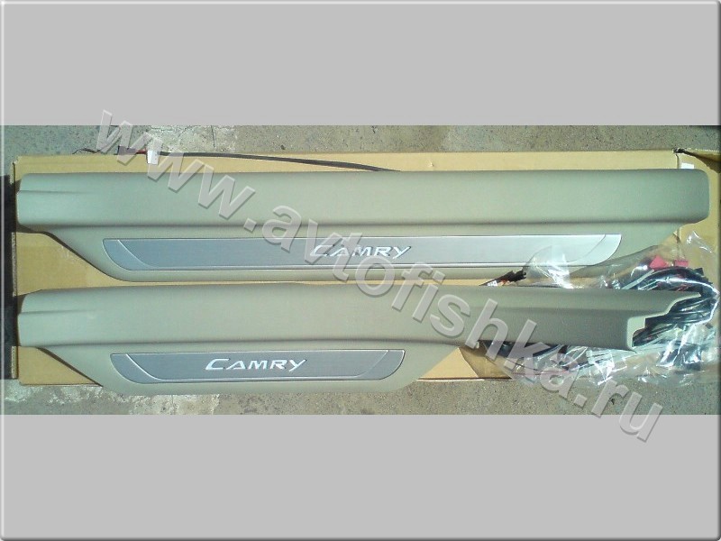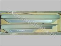 —Toyota Camry V40 (06-) накладки порогов дверных проемов, пластиковые со вставкой из нержавеющей стали с подсветкой "Camry", серые, комплект 4 шт.