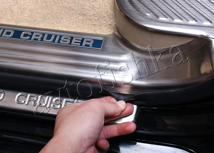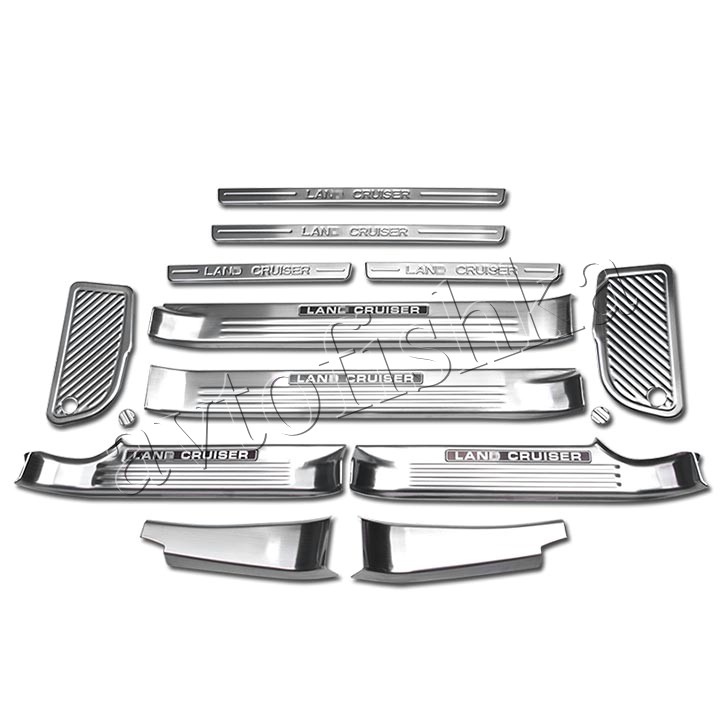 —Toyota Land Cruiser 200 (08-) накладки на пороги дверных проемов, из нержавеющей стали с надписью Toyota, комплект 12 шт.