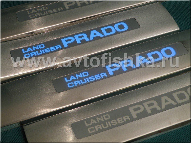 Toyota Land Cruiser Prado 120 (02-) накладки на пороги дверных проемов матовые, из нержавеющей стали с подсветкой Prado, комплект 4 шт.