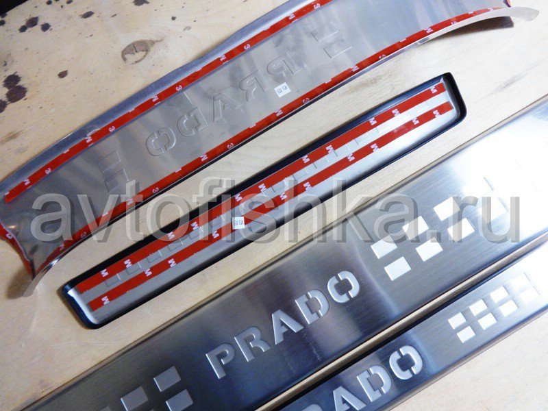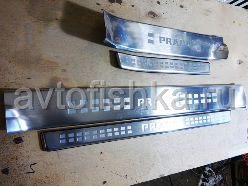 —Toyota Land Cruiser Prado 150 (09-) накладки на пороги передних и задних дверных проемов с надписью "PRADO", нержавеющая сталь