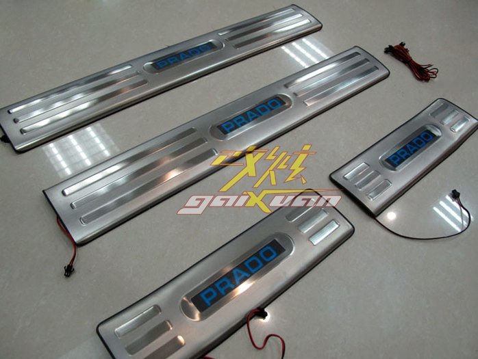Toyota Land Cruiser Prado 150 (2010-) накладки на порожки передних и задних дверных проемов со светящейся надписью "Prado", нержавеющая сталь