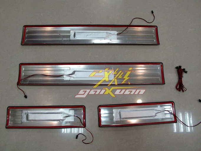 —Toyota Land Cruiser Prado 150 (2010-) накладки на порожки передних и задних дверных проемов со светящейся надписью "Prado", нержавеющая сталь