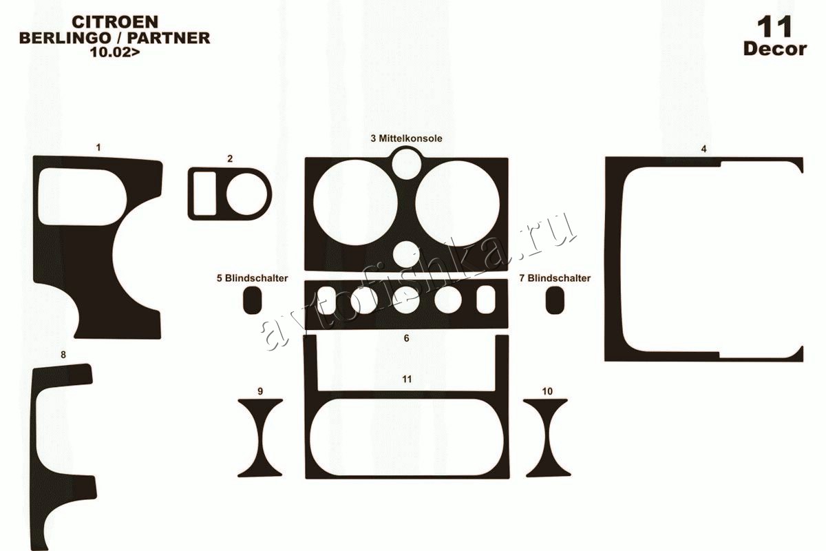 Декоративные накладки на панель приборов | Тюнинг салона для Peugeot Partner 2002-2008 полный набор накладок в салон, 22 элемента