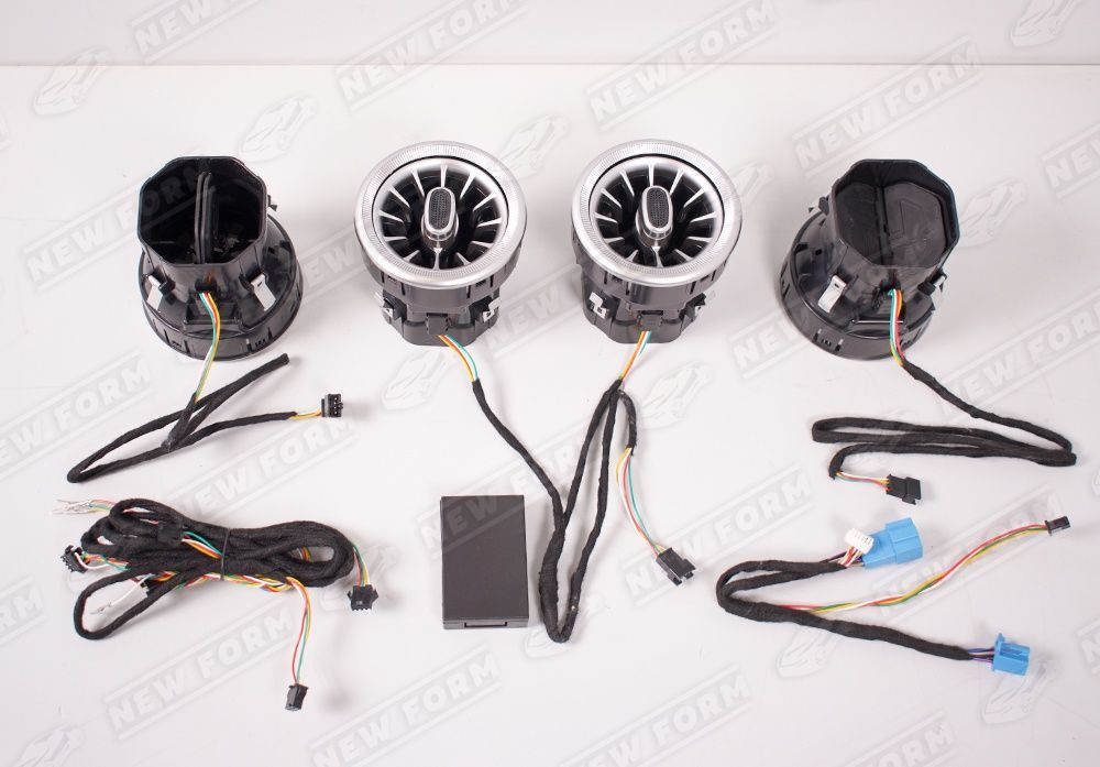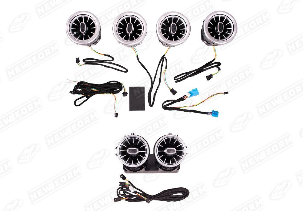 Комплект передних и задних воздуховодов вентиляции и отопления салона для автомобилей Mercedes G-class W464. Данный комплект воздуховодов предназначен для установки на автомобили Мерседес Гелендваген с 2018 года выпуска. Воздуховоды поддерживают 64 режима подсветки салона. Воздуховоды устанавливаются четко в штатные места салона автомобиля без доработок. Необходимая для корректного подключения воздуховодов проводка входит в комплект.