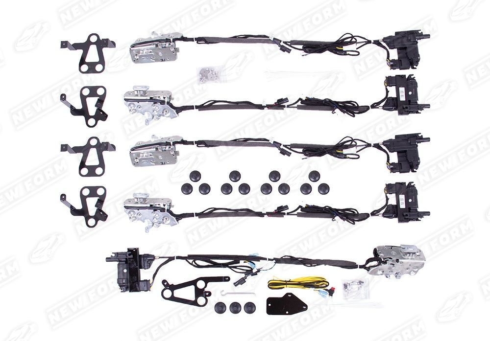 В комплект входит: 4 дверных доводчика, доводчик багажника, комплект проводки, комплект крепежа.