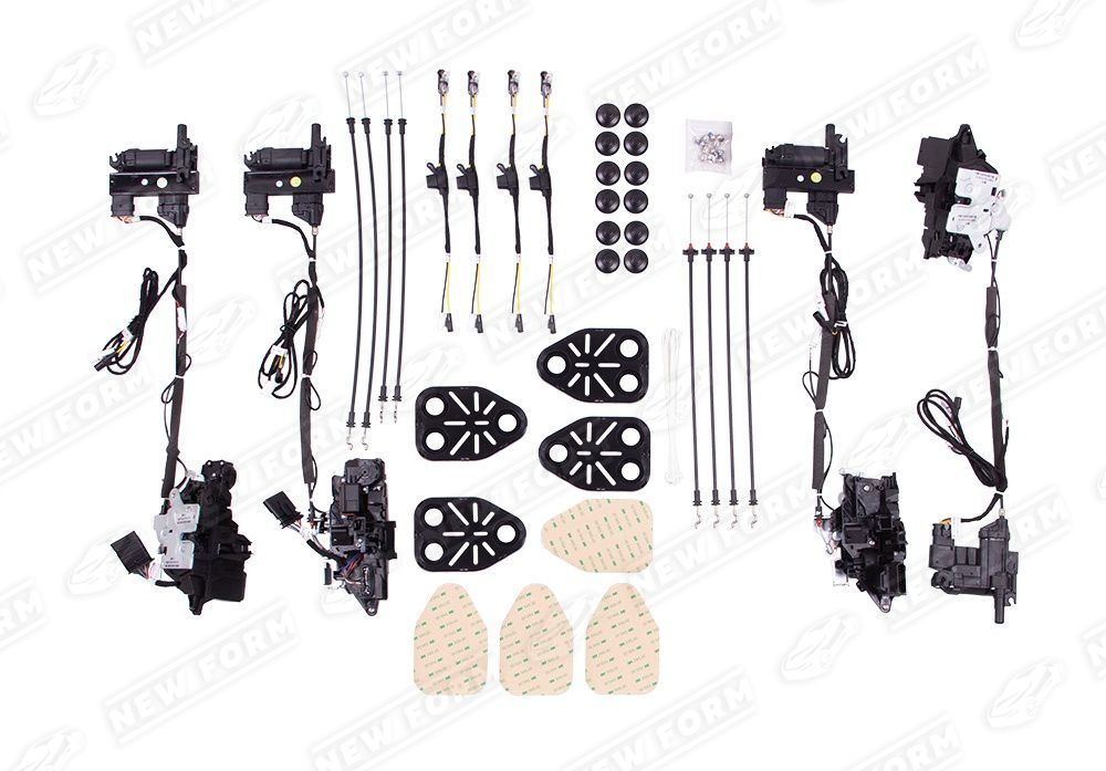 В комплект входит: 4 доводчика, комплект проводки, комплект крепежа.