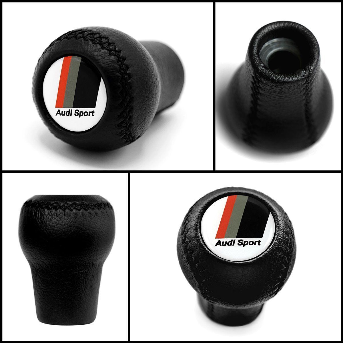 Черная, кожаная ручка резьбовая версия с эмблемой Audi Sport.