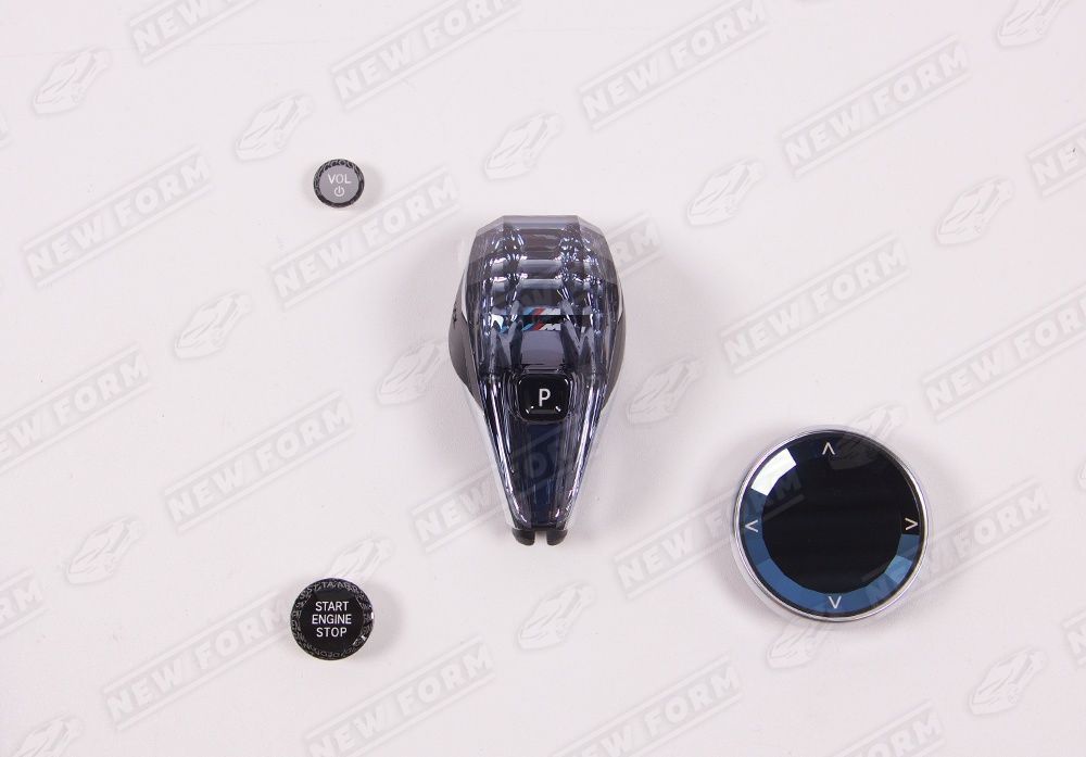 В комплект входит: ручка АКПП хрустальная с логотипом M, кнопки START/STOP, хрустальный джойстик iDrive, комплект крепежа.