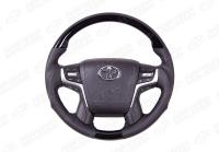 Руль черный с изгибом для автомобилей Toyota Land Cruiser 200. Данный руль предназначен для установки на автомобили Toyota Land Cruiser 200 с 2007 по 2012 год выпуска. Руль изготовлен из качественных оригинальных материалов. Устанавливается четко в штатные места автомобиля без доработок. Все необходимое для корректной установки руля входит в комплект. Элементы руля выполнены в цвете черный глянец.