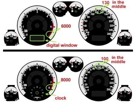 —Audi A6, C5 (97-04) светящиеся шкалы приборов - накладки на циферблаты панели приборов, дизайн № 2