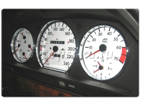 Mercedes S W126 (80-92) шкалы приборов - накладки на циферблаты приборов белые светящиеся, 240 km/h.
