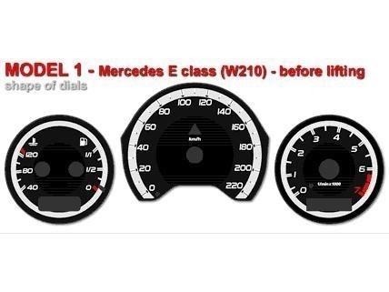 —Mercedes W210 E class 1995-1999 светящиеся шкалы приборов - накладки на циферблаты панели приборов, дизайн № 2