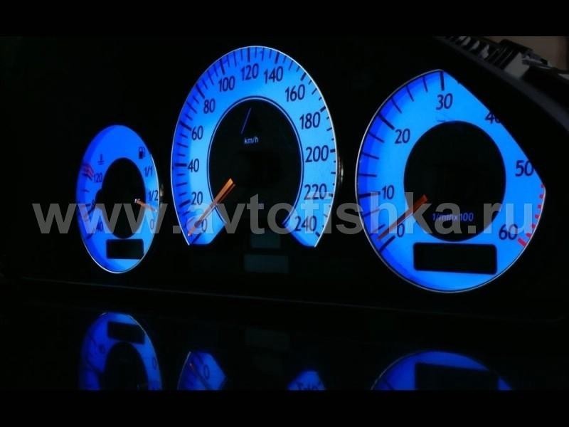Mercedes W210 E class 1995-1999 светящиеся шкалы приборов - накладки на циферблаты панели приборов, дизайн № 2