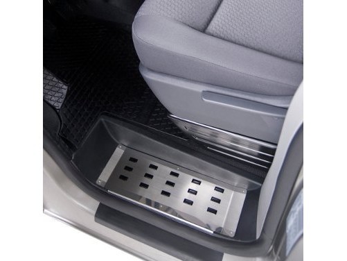 —Volkswagen Transporter, Multivan T5 (03-) накладка с силиконом на переднюю внутреннюю пластиковую ступеньку, нержавеющая сталь, к-кт 2шт.