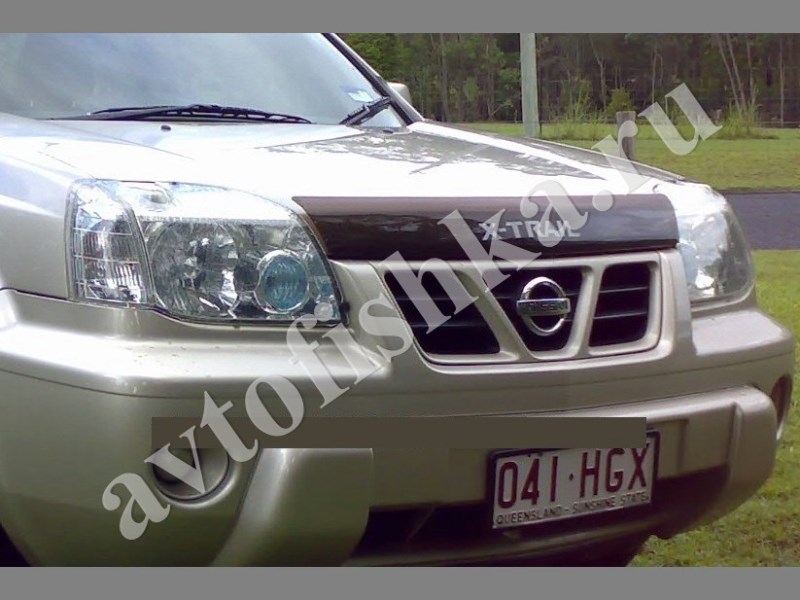 Дефлектор капота темный с надписью Nissan X-Trail 2001-2006