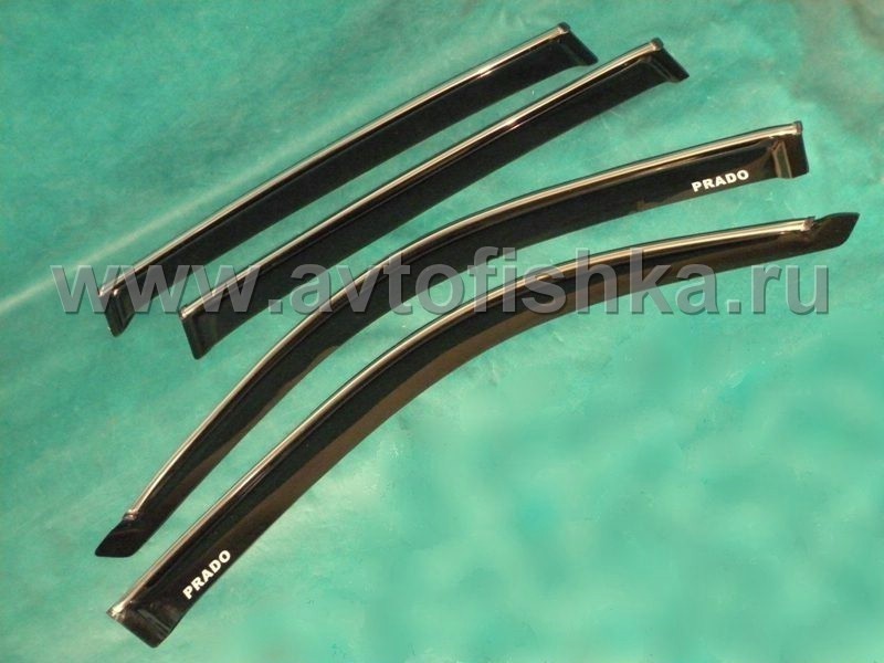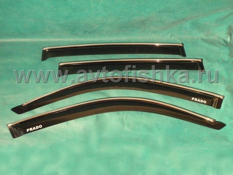 Toyota Land Cruiser Prado 120 (02-09) дефлекторы окон с хромированной окантовкой и логотипом "Prado", ветровики, комплект 4 шт.