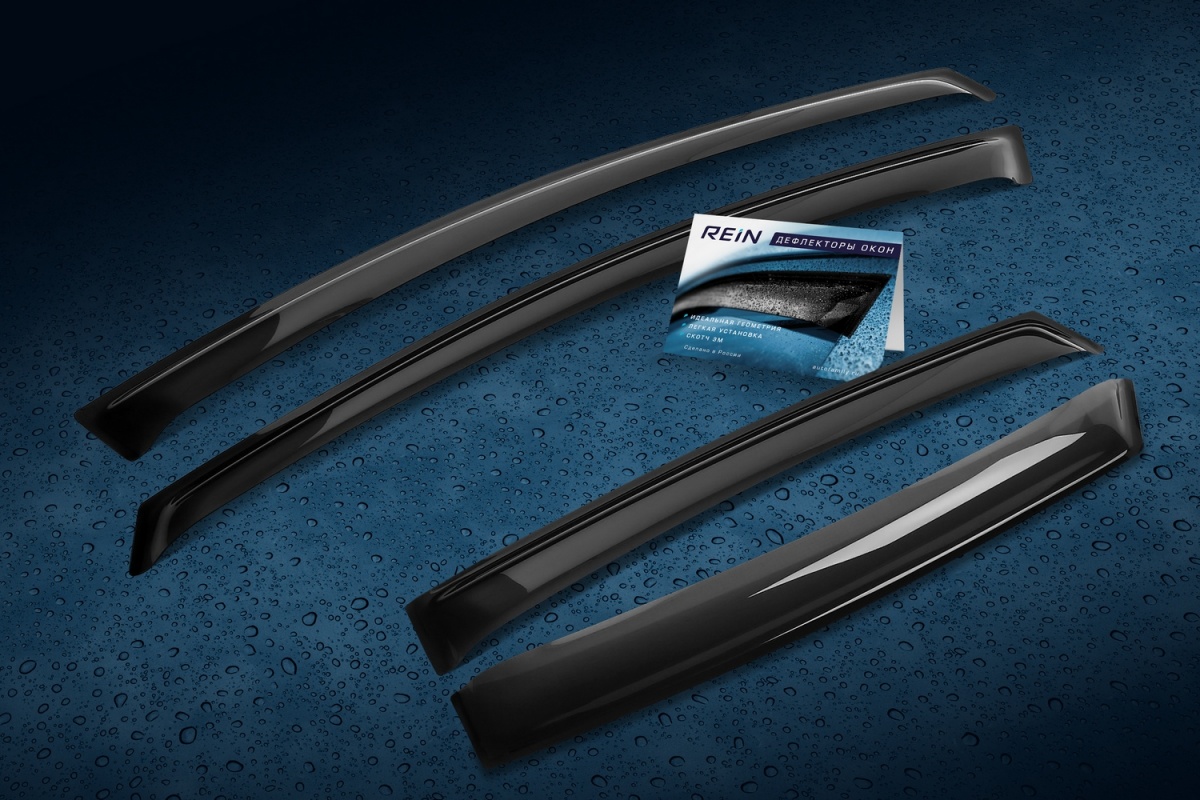 Дефлекторы REIN — это идеальный продукт по соотношению цены и качества. В данном случае низкая цена достигается за счет минимальной комплектации, при этом сами дефлекторы высокого качества, с оригинальным скотчем 3М для обеспечения сильной адгезии. У REIN широчайший ассортимент, в том числе и на грузовые автомобили, помимо дефлекторов окон имеются также дефлекторы капота, спойлеры люка, заднего и лобового стекла, защита фар.