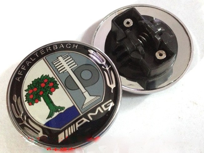 —Mercedes W163, W164, W166 заглушка на капот вместо штатной звезды, с цветным логотипом AMG Affalterbach, 55 мм.