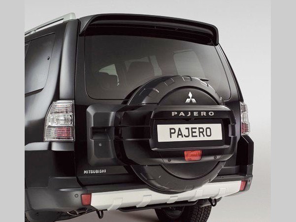 Бокс на заднюю дверь - чехол для запасного колеса на Mitsubishi Pajero 4, произведен из неокрашенного черного пластика.