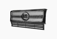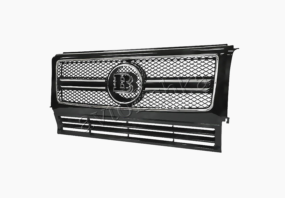 Решетка радиатора Brabus для автомобилей Мерседес Гелендваген. Данная решетка радиатора предназначена для установки на автомобили Mercedes G-class W463 с 1990 по 2018 год выпуска. Решетка радиатора Brabus устанавливается четко в штатные места переднего бампера без доработок. Решетка радиатора выполнена в черном цвете, с черной сеткой и хромированными элементами.