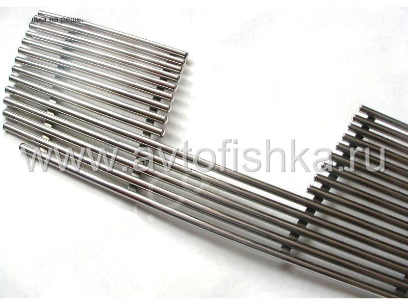 Декоративная накладка на решетку радиатора изготовлены из нержавеющей полированной стали марки AISI 304 и не подвержена воздействию коррозии. Трубка 10 мм. Устанавливаются на штатную решетку с использованием специального нержавеющего крепежа. Решетка придает великолепный внешний вид Вашему автомобилю и защищают его от повреждений. Гарантия 2 года.