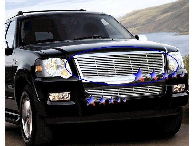 —Ford Explorer (06-) накладки на решетки радиатора и переднего бампера из нержавеющей стали, горизонтальный дизайн, комплект - 2 шт.