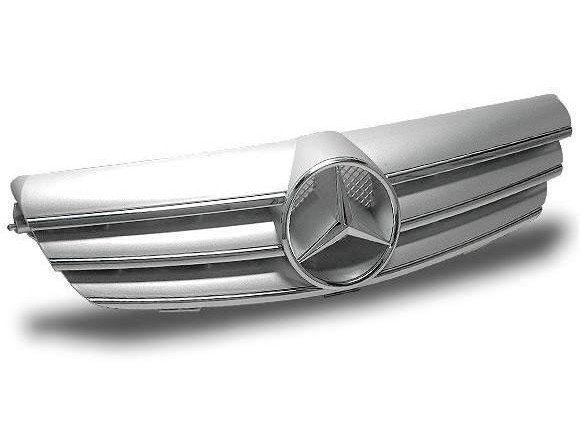 —Mercedes CLK W209 (03-09) решетка радиатора серебристая, дизайн Big Star, стиль CL, 3 ламели.