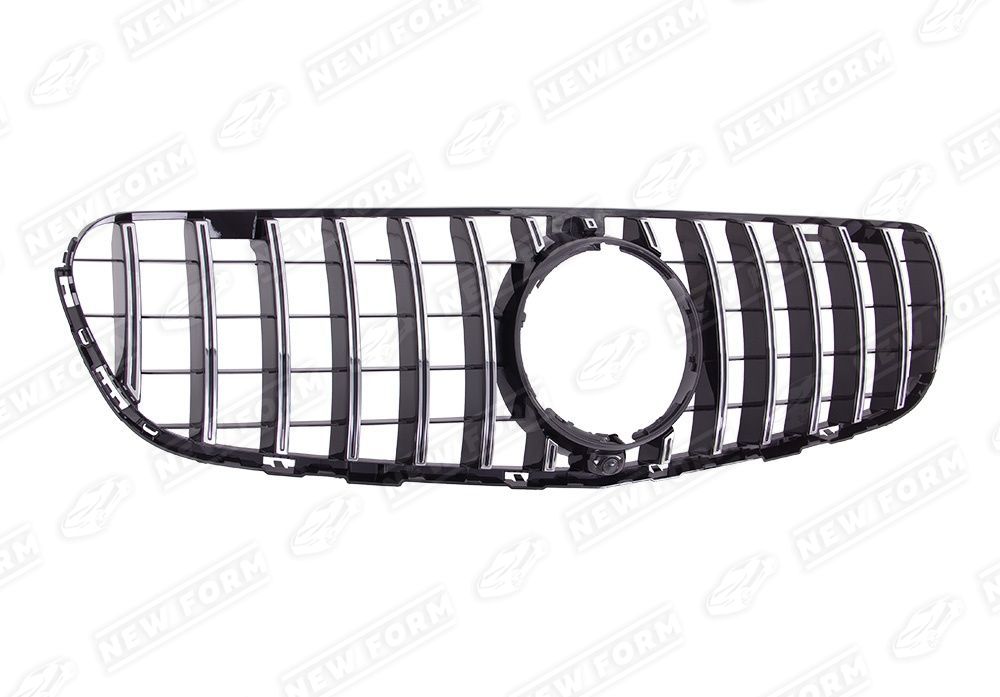 Решетка радиатора AMG GT хром для автомобилей Mercedes GLC Coupe C253. Данная решетка радиатора предназначена для установки на автомобили Mercedes GLC Coupe C253 с 2016 по 2019 год выпуска. Решетка радиатора AMG GT устанавливается четко в штатные места переднего бампера автомобиля без доработок. Решетка радиатора выполнена в цвете хром.