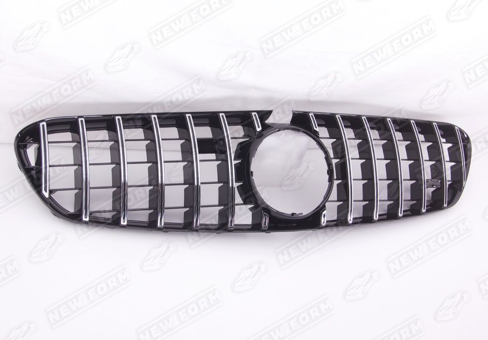 Решетка радиатора AMG GT хром для автомобилей Mercedes S-class Coupe C217 рестайлинг. Данная решетка радиатора предназначена для установки на автомобили Mercedes S-class Coupe C217 рестайлинг с 2017 года выпуска в AMG пакете и для автомобилей версии 6.3 AMG. Решетка радиатора AMG GT устанавливается в штатные места переднего бампера без доработок. Решетка радиатора выполнена в цвете хром.