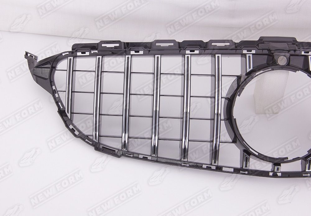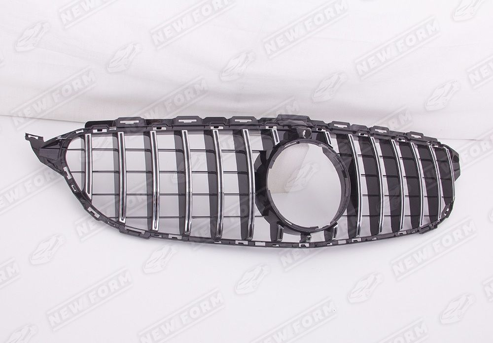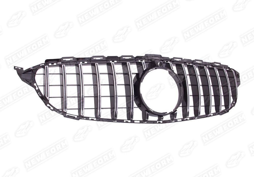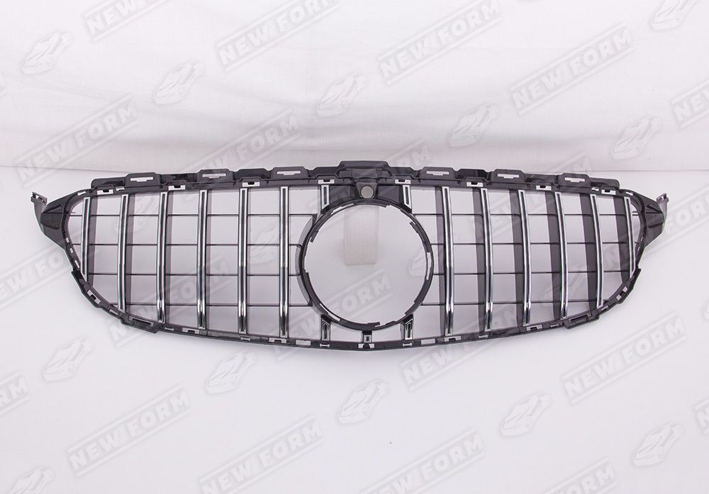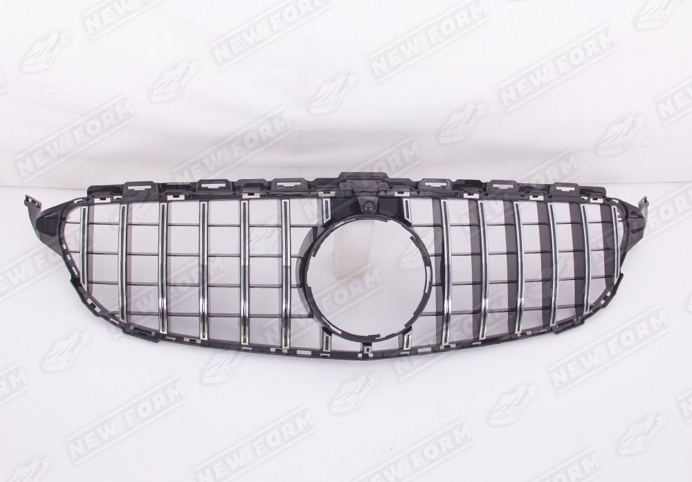 Решетка радиатора AMG GT хром для автомобилей Mercedes C-class W205. Данная решетка радиатора предназначена для установки на автомобили Mercedes C-class W205 с 2014 по 2018 год выпуска. Решетка радиатора AMG GT устанавливается в штатные места переднего бампера без доработок. Решетка радиатора выполнена в цвете хром.