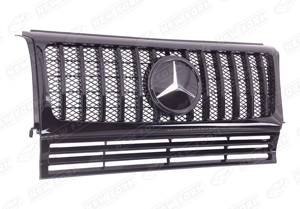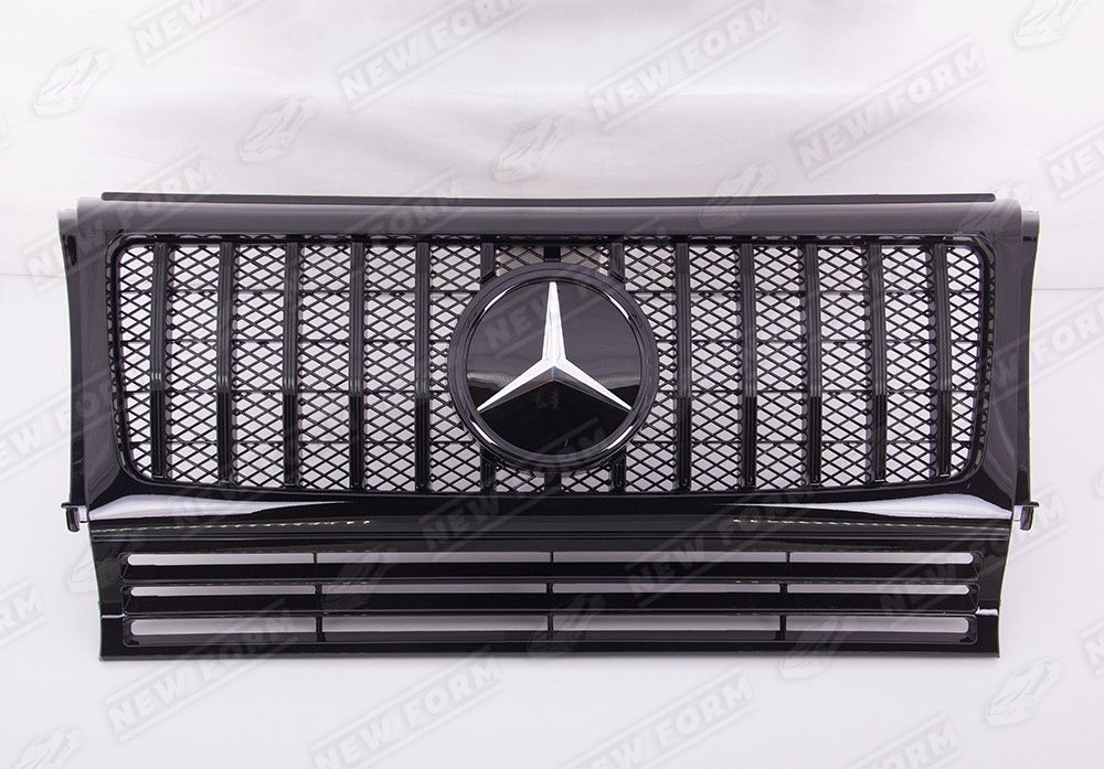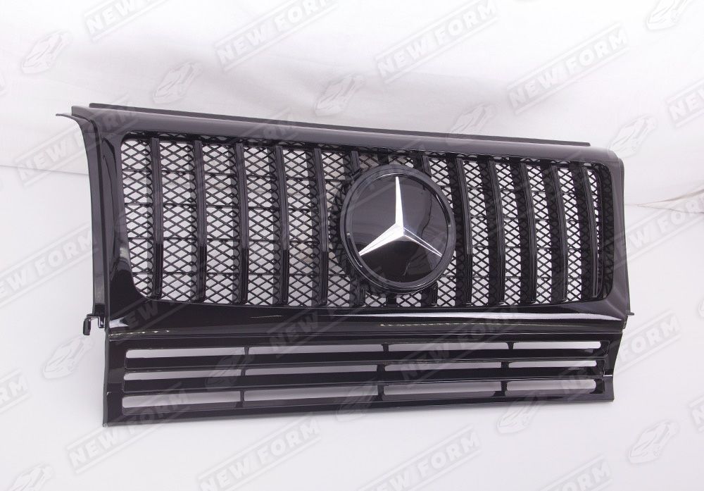 Решетка радиатора AMG GT черная со стеклянным значком для автомобилей Mercedes G-class W463. Данная решетка радиатора предназначена для установки на автомобили Мерседес Гелендваген рестайлинг с 1990 по 2018 год выпуска. Решетка радиатора устанавливается четко в штатные места переднего бампера, без доработок. Решетка радиатора AMG GT выполнена в черном цвете. Эмблема стеклянная выполнена в черном цвете. Решетка радиатора дополнена шильдиком AMG.