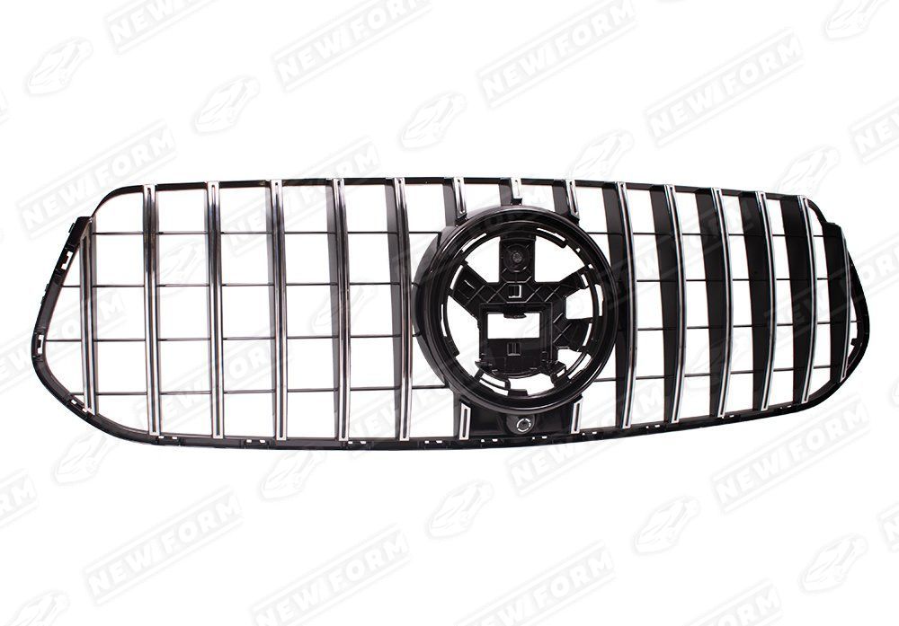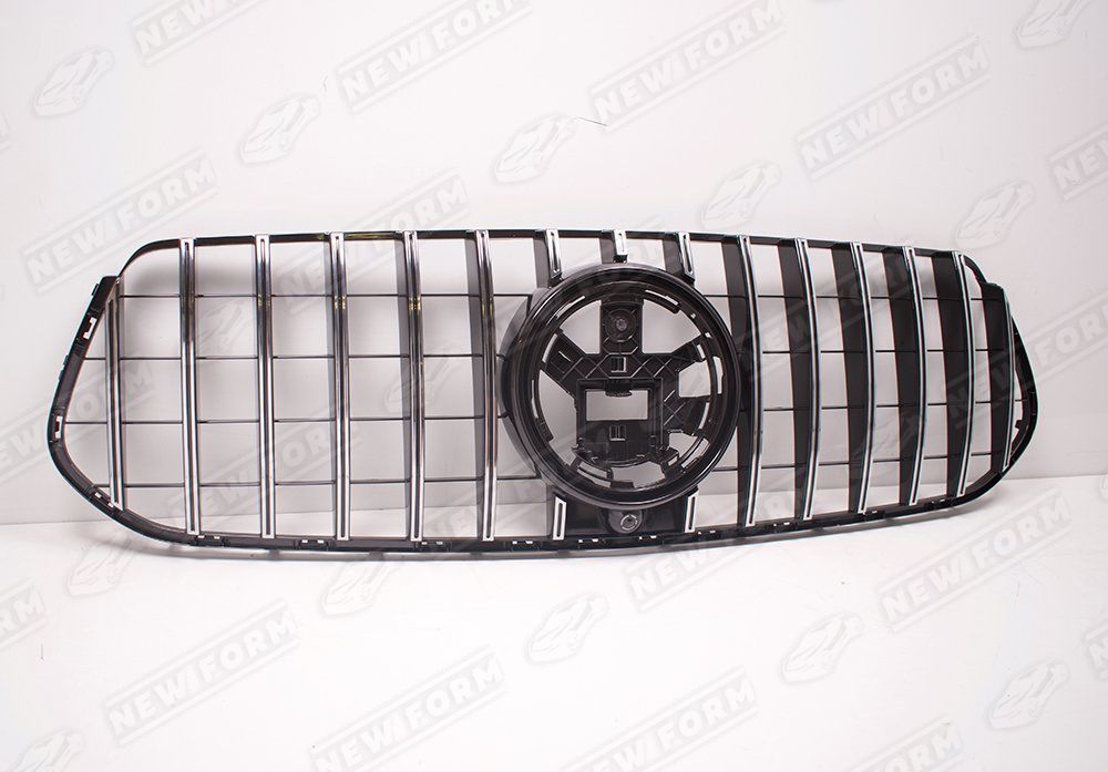 Решетка радиатора AMG GT хром для автомобилей Mercedes GLE V167. Данная решетка радиатора предназначена для установки на автомобили Mercedes GLE V167 с 2018 года выпуска в AMG пакете. Решетка радиатора выполнена из оригинальных материалов. Решетка радиатора устанавливается четко в штатные места переднего бампера AMG без доработок. Решетка радиатора AMG GT выполнена в цвете хром.